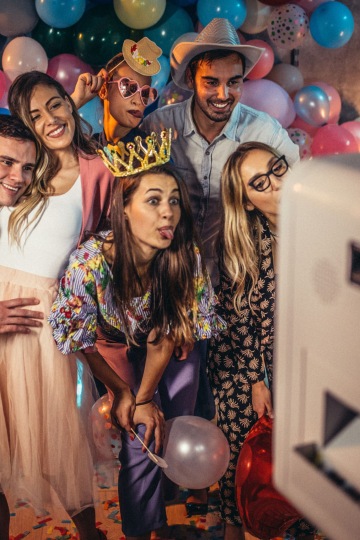 Díky rekvizitám, pozadí a okamžitému tisku si každý odnese úsměv i památku na společně prožitý večer.