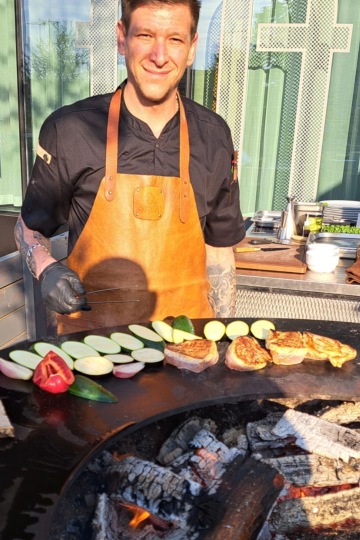 Šéfkuchař připravuje maso, zeleninu i sýry přímo před hosty a vše doplňuje o lahodné omáčky a přílohy.