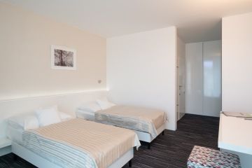Postele: 1 manželská postel variabilně přestavitelná na 2× single beds