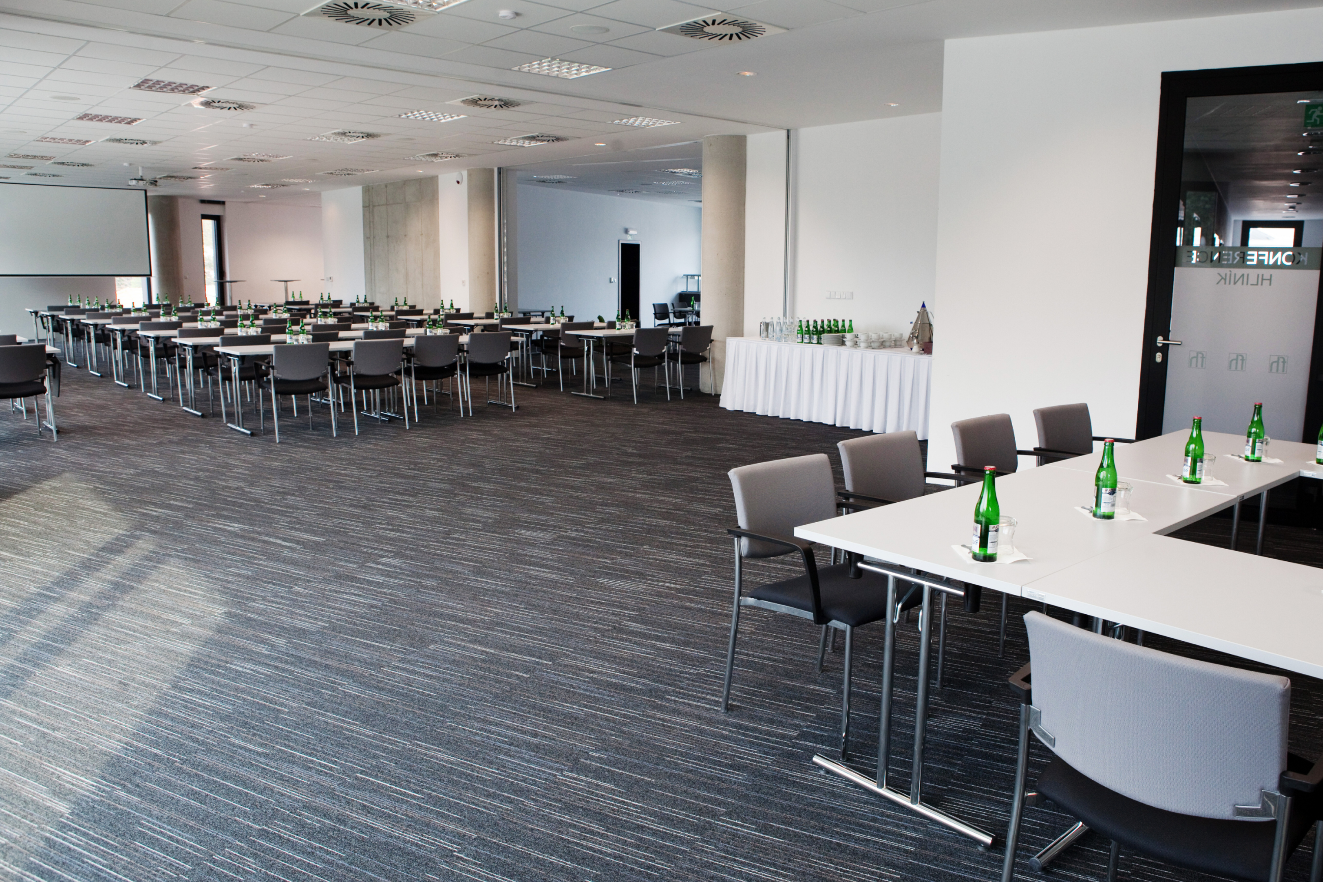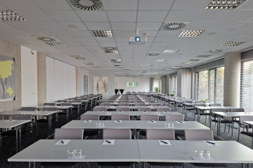 The conference hall Hliník is the largest hall with two separate entrances. It can be operatively divided into two separate halls by a mobile acoustic wall – Malý Hliník and Mahler. This room follow up on the coffee break area with its own bar and equipment for serving cold and hot food.