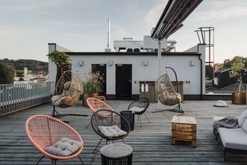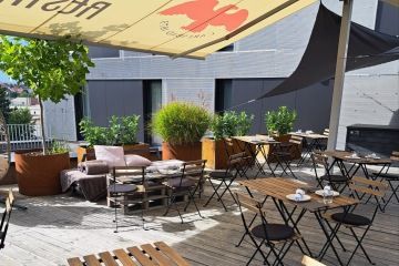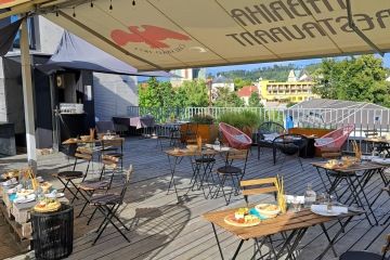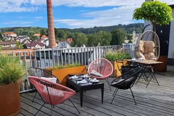 Venkovní prostor s neopakovatelnou atmosférou a kouzelným výhledem na město i jeho okolí. Ideální pro letní party, koktejlové večírky či svatební hostiny pod širým nebem.