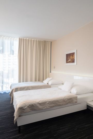 Nabízíme ubytování v 19 pokojích s celkovou kapacitou 40 lůžek. Je možno ji rozšířit o 3 přistýlky. Ve všech hotelových pokojích je kladen důraz na vysoký standard pobytu a originální interierový design. Pokoje byly navrženy tak, aby spojovaly funkčnost s nejvyšším pocitovým komfortem. Každý pokoj je vybaven minibarem, trezorem, LED TV, nábytkem vyrobeným na míru, přestavitelnými lůžky se zdravotními matracemi , vysokorychlostním připojení WiFi zdarma a ekologickým systémem chlazení i vytápění. Přístup do pokojů je prostřednictvím bezpečností elektronické karty. Klid v každém pokoji je zabezpečen širokými stěnami, zesílenými dveřmi, kvalitními okny i hlukovými izolacemi vodorovných konstrukcí v každém pokoji. Mysleli jsme na to již při projektování celé stavby.
